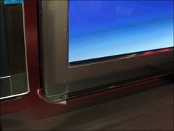 夏普LX530屏幕边框两侧稍微向内凹,在机身左上角印上了AQUOS商标,不过并没有贴上“贵丽泷”四色技术标签,目前只有夏普中高端机器采用了四色屏幕技术,而LX530系列并没有搭载。机身正面左下角则有注明LX530拥有100/120Hz倍速技术,右下角也注明了其拥有DIVX HD解码与SRS TruSurround HD 音响技术。