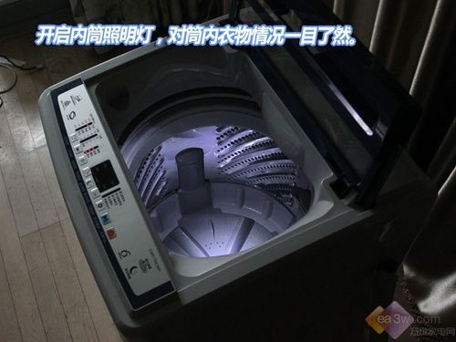 惠而浦D6576CBP配有筒内照明灯,这样就避免了波轮洗衣机因筒内光线不足导致的操作不便的难题。令您在任何时刻都可以洞悉筒内衣物的洗涤情况。