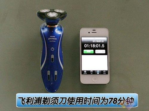 4.使用效率,所谓的使用效率就是本机实际使用的时间除以实际的额定充电时间,所得出来的比例。飞利浦剃须刀使用效率为130%, 博朗剃须刀使用效率为108%、松下剃须刀使用效率为116%、飞科剃须刀使用效率为100%