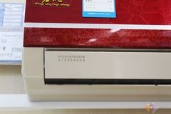 空调是王者风尚系列中的一款壁挂机,产品除了运用了典雅、高贵的花纹以外,空调的显示屏则中规中矩的设置在出风口上方,开启后就会自动进行运转显示。