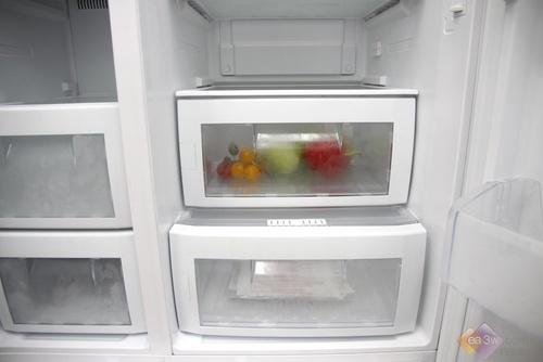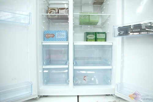 美的BCD-553WKM冷藏室底部具有两个分类存储盒盒,方便使用者将食物分类存放。