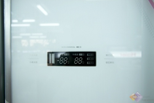 美的BCD-555WKM白色面板镶嵌着触摸模式的操作显示屏,符合时下的流行趋势,更具时尚感。