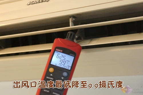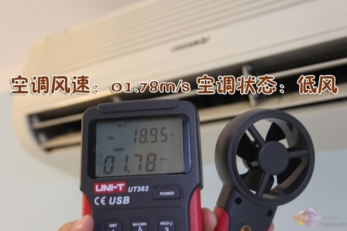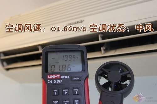 在测量时,我们对空调出风口的风速进行了时时测量,取不同风档的最大值,并用照片进行了真实的记录。