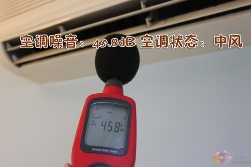 此次测试测量我们分别测量了空调的低风、中风、低风噪音最大值,在空调出风口处,我们进行了时时测量,以照片方式记录,真实展示。