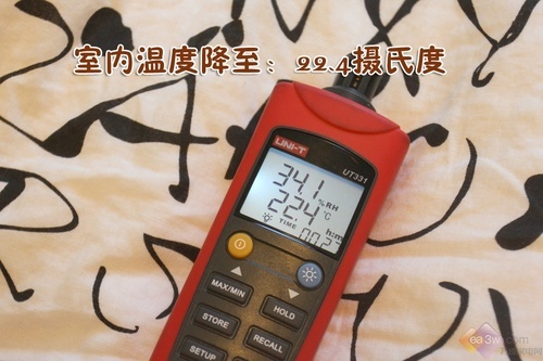 根据评测数据显示,空调在运行一小时后,室温从26.7摄氏度降至22.4摄氏度,室内明显感觉凉爽,空间内降温速度还是较为明显。