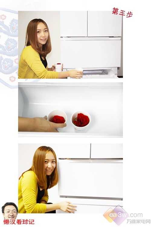 第三步:将纸杯放入冰箱冷冻室进行冷冻,放置时一定要平稳,等过了2个小时后再看,玫瑰一半已经被冻住,接下来再放入少量纯净水,使玫瑰花完全被淹没,再等2个小时后看看吧……