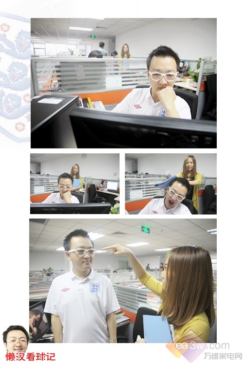 还记得那个懒汉小张吗?现在人家生活自理能力可强了!不仅如此,工作勤快了,人也精神了。现在欧洲杯淘汰赛激战正酣,懒汉小张自然也有喜欢的球队——英格兰队,为了看球他可是整夜不睡觉啊,如此痴迷足球,连他那个漂亮女友都被忽略了,为此才发生了下面的故事……