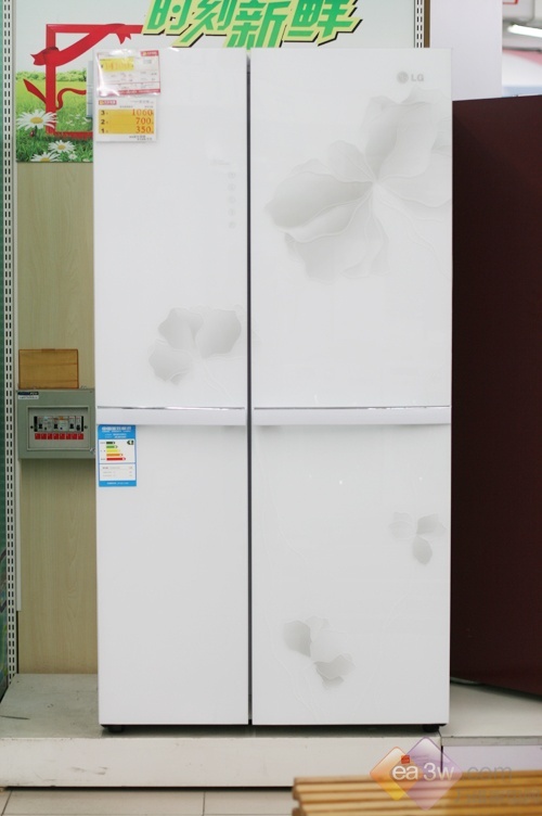 外观点评:这款LG GR-C2376AZT对开门冰箱,采用了唯美的外观设计,淡雅的花卉纹案与白色背景浑然天成,独特的门中门设计,更是给这款冰箱加分不少。