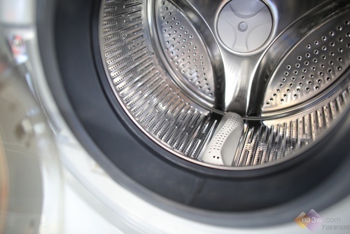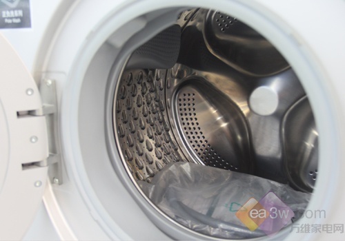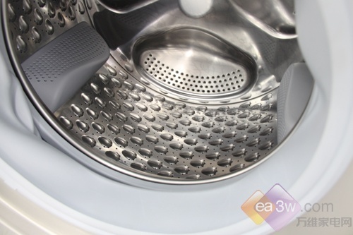 滚筒方面,采用的不锈钢材质,可大大提高滚筒寿命。雨滴式滚筒突出桶壁,可有效提高滚筒与衣物的接触面,增强洗涤效果;而每个雨滴式凸起的周围,都有5个密布的小孔环绕,这有效提高了脱水的速度和效率。