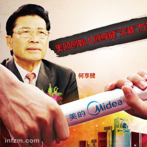 2012年8月25日,美的宣布,何享健将卸任美的集团有限公司(下称“美的集团”)董事长。由现年45岁的方洪波接任。令外界瞩目的是,新一届美的集团董事会的10名成员中,何享健唯一的儿子何剑锋仅以董事身份出现。经过此次调整,美的集团董事会将由清一色的职业经理人担任。