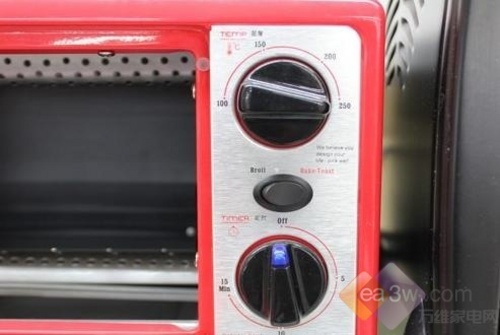 烤箱内置配置烤箱灯,箱内食物清晰可见,高效石英发热管让食物受热更均匀,不粘油涂层不易烤焦。其温度在100-250度之间,带有15分钟定时功能。
