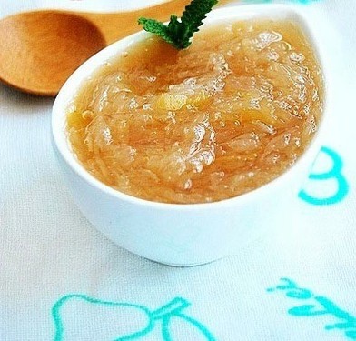6.把切好的柚子皮和果肉泥放入干净无油的锅中,加一小碗清水和冰糖,用中小火熬1-2个小时,熬至黏稠,柚皮金黄透亮即可,注意熬的时候要经常搅拌,以免粘锅。等放凉了加入蜂蜜,搅拌均匀后就做成蜂蜜柚子茶了,然后放入密封容器,放入冰箱冷藏,3天后就可以食用了。