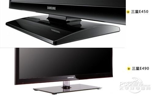 底座是E450和E490最大的区别,E450是长方形中部稍微拱起的设计,而E490的支撑轴则是透明的有机玻璃,前者较为稳重,后者则较为时尚。