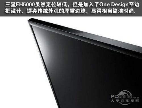 三星EH5000加入了One Design窄边框设计,摒弃传统外观的厚重边缘,虽然没有自家的高端产品ES8000等那么纤薄,但还是显得相当简洁时尚。