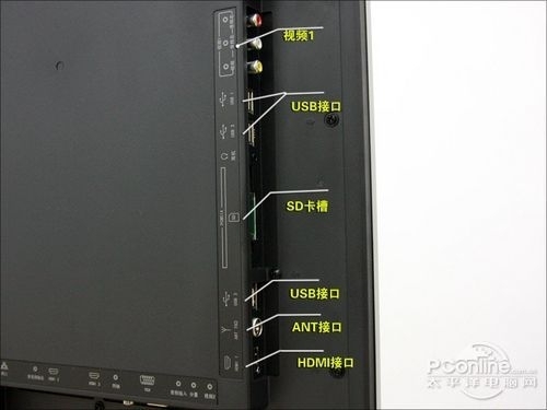 接口区的接口有3×HDMI1.4、1×网络接口、3×USB、2×视频输入、1×音视频输出、1×同轴、1×VGA、1×耳机、1×分量、 1×SD卡槽。用户可以给电视购买一张SD卡,在下载资源以及安装软件时可以将其放SD卡内,以免占用太多的电视本身的储存空间,这也有利于安卓系统的流 畅使用。