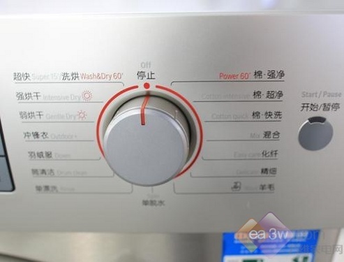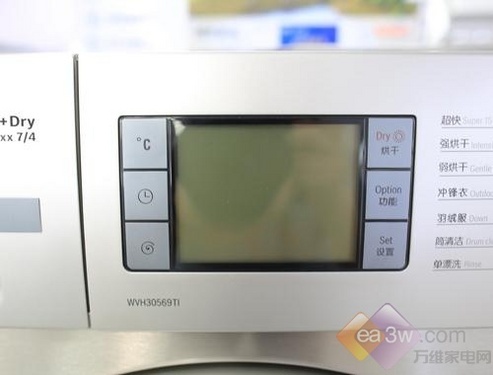 控制面板采用了超大液晶显示屏,能够全完显示出当前的运行状态。短键程的物理按键,方便快捷,6个功能按钮分别为温度调节键、时间选择键、甩干选择键、烘 干键、功能键以及设置键。再配合旋钮控制,可搭配出各种不同的洗涤方案。精细分类,能够让不同的衣物都能得到彻底的清洗。