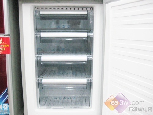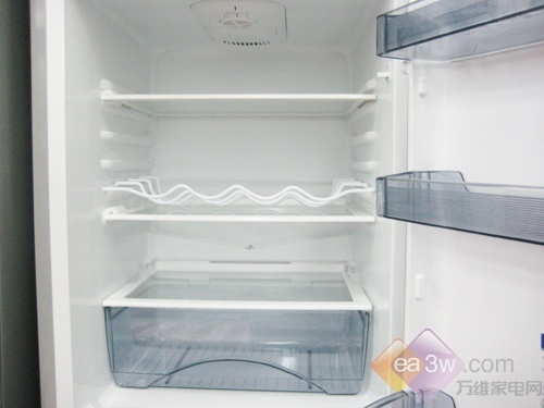 在内部结构的设计方面,它的表现也是不错的,冷藏室内部具有三个蔬果盒,存储量较大,而且便于分类,有效的防止食物串味的可能。