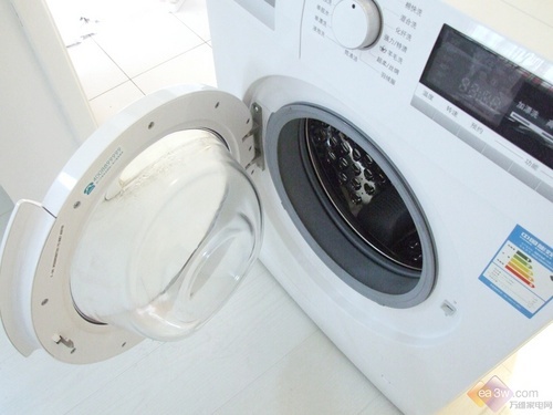 在控制面板方面,该产品采用了旋钮调节右置的设计,便于右手习惯的用户操作。LED数字动态显示器位于控制面板中央,一目了然,简单明了。旋钮的阻尼程度也非常适手,12点钟方向即可关闭洗衣机。细节之处的精心设计,亦使得该机获得不少的主观印象加分。