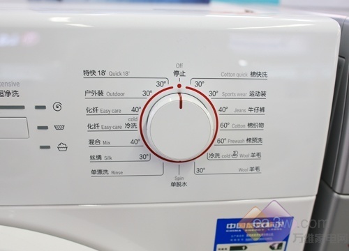 控制面板采用了旋钮的设计方式,再加上开始、加漂洗、超净洗三个短程按钮,简单快捷易操作。这款洗衣机虽然没有采用液晶显示屏,但是简单的LED指示灯, 也能明了地反映出洗涤状态。加漂洗、超净洗、羊毛、丝绸等洗涤方式一应俱全,而18分钟特快洗更是这款洗衣机的亮点,让你稍等一刻钟,就能将衣服洗净。