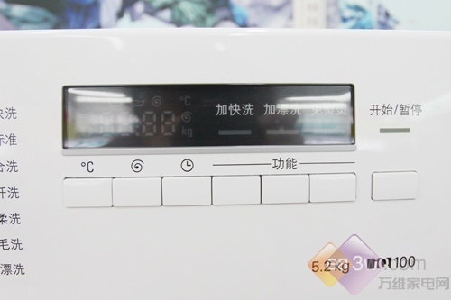 在控制面板方面,这款洗衣机采用了简单的按钮和旋钮搭配,泡沫控制程序,可自动感知泡沫的丰富程度。突破性的15分钟快洗程序,可通随时过调整洗涤速度、 力度、内筒转动节奏,仅需15分钟就完成洗、漂、脱水全过程。洗涤方式包括标准洗、化纤洗、羊毛洗、内衣洗、强洗、筒洁净等。