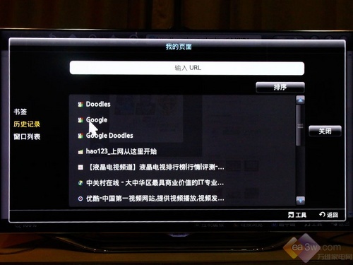 除了可以浏览向万维家电网这样的家电第一垂直门户以外,当然,用户也可以根据自己的需求,输入网址浏览网站,点击网址输入栏时,出现一个键盘类型的界面,有字母、数字等相关标识,用户可以通过遥控器的左右按键移动鼠标操作。