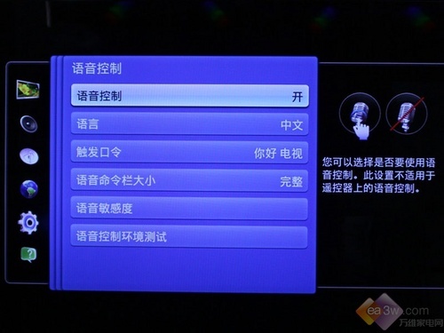 三星UA65ES8000J智能电视的语音控制技术需进行简单设置后才能使用。