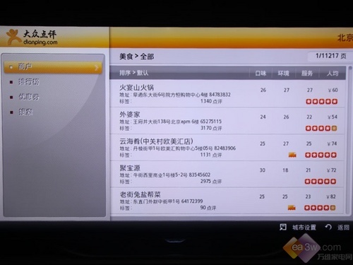 大众点评网以餐饮为切入点,全面覆盖购物、休闲娱乐、生活服务、活动优惠等城市消费领域。用户可以通过三星UA65ES8000J智能电视的大众点评软件及时了解身边有什么好吃的、好玩的,为自己的日常生活增添无限欢乐。
