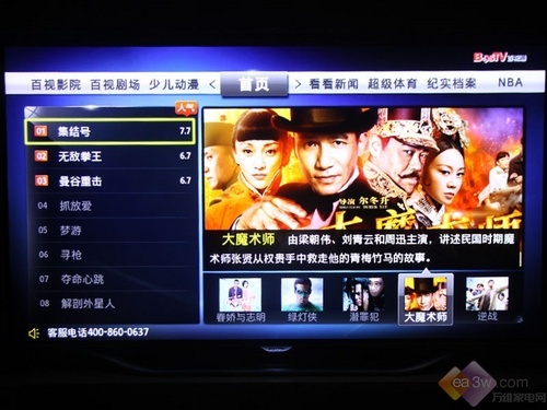 三星UA65ES8000J智能电视的在线影视内容是与百视通进 行合作推出的。百视通(BesTV)是目前智能电视应用平台非常强大的网络电视软件,百视通由上海文广新闻传媒集团(SMG)和清华同方股份公司合资组 建。BesTV在中国IPTV产业中处于领先地位,国际媒体评价BesTV为全球最著 名的IPTV产业品牌之一。