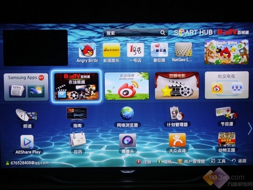 作为三星2012年旗舰级产品,三星UA65ES8000J智能电视最重要的特点在于拥有三星最新研发的智能应用中心(Smart Hub),其特色在于是可连接、显示并播放所有连接设备内容,并展示在同一界面内。与之前三星D8000系列产品相比,三星UA65ES8000J智能电 视在智能应用中心(Smart Hub)界面有了较大改变,为使用者呈现出更清晰的操作界面。