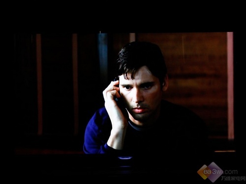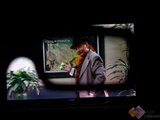 我们从播放的画面可以明显的看出有重影现象,戴上3D眼镜之后就可以观看到正常的3D画面了。在操作时,笔者是在黑暗的空间内进行的3D效果测试,透过3D眼镜的单个镜片拍摄的画面可以看到有串扰现象,并且也有亮度过多降低和重影现象的出现。