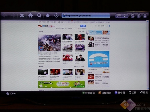 与其他品牌的智能电视不同的是,三星UA65ES8000J智能电视在进行网页浏览的同时,还可以看到右下角有一个画中画的显示,用户可以边上网,边关注电视/电影节目,随时做好切换,设计相当的人性化。