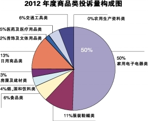 近年来,家电产品质量和售后服务一直是消费者投诉热点。据广州市消委会统计,2012年全年,通过12315热线接到家用电子电器类的投诉和咨询案件共24163宗,占到总投诉量的一半。其中,受理投诉案件有17950宗,而对通信类产品的投诉占家用电子电器类全年投诉量的45.50%。