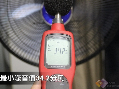 风速是本机性能的一个重要体现,风速越大电风扇会带给你清爽感觉就越明显,而且风感柔和才能让使用者感觉到舒适。本次测试使用风速测试仪来进行测量,将对本机的最大风速和最小风速进行直观的统计。