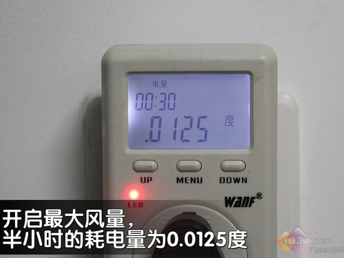 6。耗电量测试,本次评测将机器开启最大档位和最小档位进行测试,每次的测试时间为30分钟,本机在30分钟内最大档位的耗电量为0.0125度电,最小档位耗电0.0022度,相比之下十分的节能。