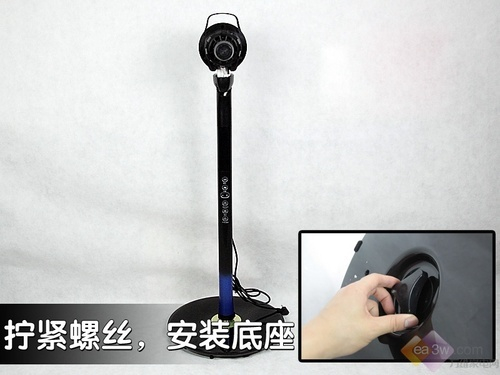脚盘的组合比较简单,将立脚管插入脚盘,从脚盘瞎补顺时针拧入三角蝶螺丝,固定使整机稳定。
