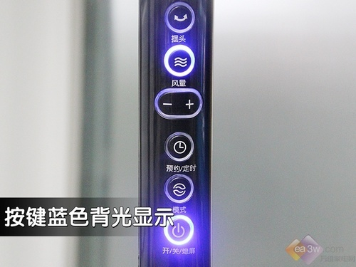 1.外观设计,外观是大家比较看中的,艾美特电风扇FS4063DR外观设计更加豪华,整体黑色的主题颜色,加入黑蓝的渐变颜色,更显时尚感。另外,它采用LED背光显示按钮,夜间使用时屏幕能够熄灭,更加省电,让你保证一个良好的睡眠