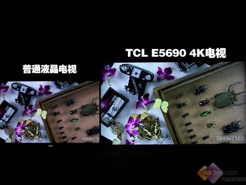 首先,我们来看看通过TCL云晰E5690超高清电视与普通全高清电视播放同样的静态图片的实际对比效果。从所播放静态图片我们可以明显的看出,TCL云晰E5690超高清电视所呈现的效果比较柔和更加的贴近真实,普通全高清电视所呈现的画面颜色较深。