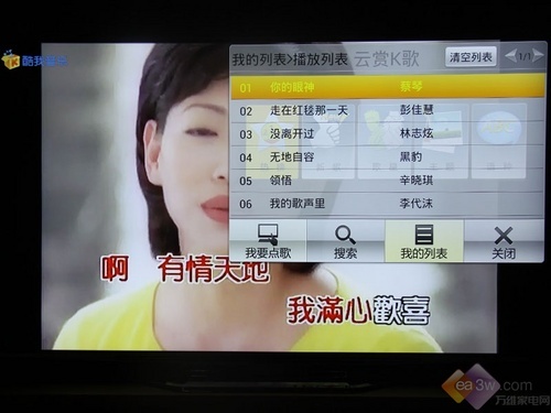 在使用TCL云赏K歌功能的过程中,如果用户遇到喜欢的歌曲可以直接加入到我的列表,方便日后再次想唱歌曲时不用再次进行繁琐的操作。除此之外,使用者通 过遥控器可以方便的呼出操作菜单,共分为点歌、搜索、列表三个部分,点歌环节中包括热榜、新歌、歌星、主题和语种选歌,与KTV中的选歌方式相似。