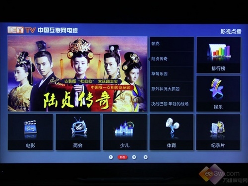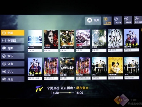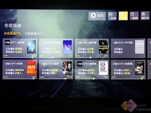 正在看功能,该功能能够自动推送目前电视频道热播的视频节目,包括了电视剧,电影,娱乐以及体育节目。用户能够通过列表轻松了解到目前热播的电视节目。同时在界面下方还有节目的播出时间,非常直观。