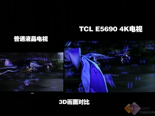 在测试TCL云晰E5690 4K智能云电视3D功能的过程中,TCL云晰E5690 4K智能云电视所播放的画面清晰度高、立体感强,并且还没有画面抖动的现象,并且还能够将普通的2D画面转换成3D效果,并且播放效果优秀,在播放转3D 画面时一些特殊影像立体感超强。