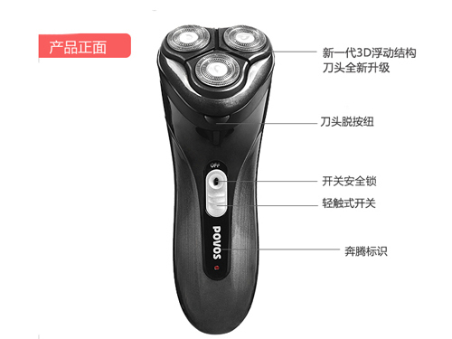推荐理由:奔腾PQ912J新一代3D浮动,可以满足用户上下左右无死角贴面剃须,并搭配360°贴面刀网,厚度仅为0.08mm,不残留胡须。背面还设有修剪刀,可以轻松剔除鬓角和长须,实用而方便。售价也仅为89元,不到百元的价格,性价比还是不错的,合适购买。