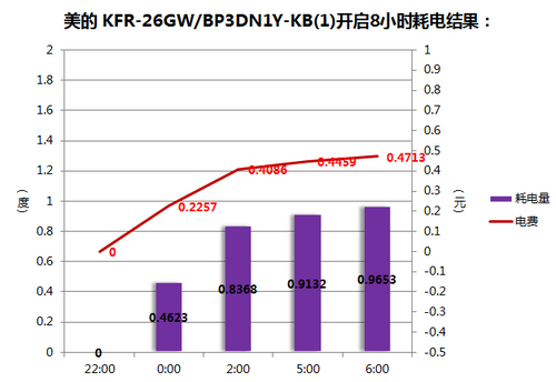 美的 KFR-26GW/BP3DN1Y-KB(1)运行8小时耗电测试结果: