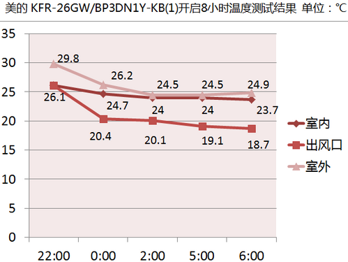 美的 KFR-26GW/BP3DN1Y-KB(1)运行8小时温度测试结果: