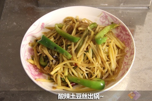 酸辣土豆丝出锅!这道菜也是小编自己亲手烹饪,当然了,从这道菜上来看,小编的刀工是要进一步加强了。