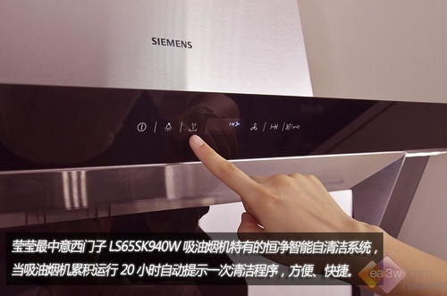 专门为中国厨房设计的西门子自清洁系统,当吸油烟机累积运行20小时后(三口之家大约每一到两周)自动提醒您启动清洁程序,油烟机内部清洁工作完全日常化,自动化。