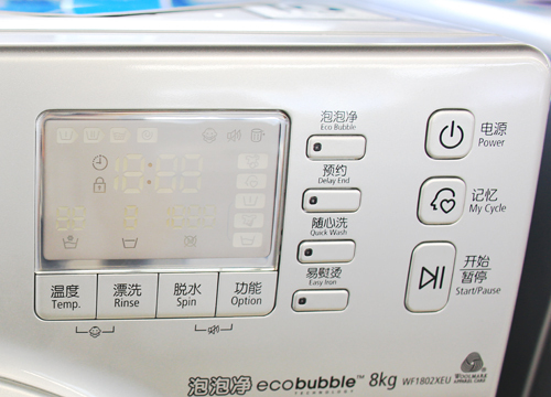 这款三星超薄的WF1802XEU洗衣机,仍然采用了三星的独有泡泡净技术,通过泡沫发生器在洗涤初期就产生大量泡沫洗涤液,充分溶解衣服表面污渍,提高 洗净率,节省漂洗时间。咖啡银色的外观设计和炫光舱门圈,看来金碧辉煌,帝气十足。600*450*850mm的三维身材也在8公斤容量的前提下,做到了 最大缩减。
