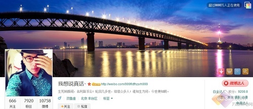 喜欢美食、摄影、音响、和一切高科技产品的新浪微博白金达人“我想说真话”