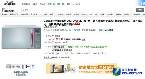 [中关村在线家电频道原创] 如 今几乎家家都有微波炉,然而普通的低端微波炉仅能够热热饭菜,稍微复杂一点的烹饪就无能为力了。笔者为大家推荐一款格兰仕G80F23CN3XL- C2K(R5)微波炉,该产品外观时尚前卫,同时性能方面也主打多功能,22味常用菜单一键烹饪,操作起来更加方便。近期,这款产品在亚马逊的报价为 869元,感兴趣的朋友不妨由此购买点击进入亚马逊。