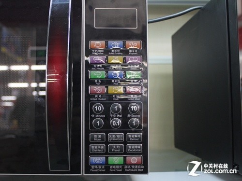 | 其他性能 | 屏显下方设有功能旋钮,电脑计时,操作方便。 自由调节烧烤温度; 红外数码温控,轻松调控合理火力; 智能营养菜单,一键烹出营养美食; 三洋SETM平台旋波技术;智能节能模式,人性节能,智能保护; 好记芯功能,蜂鸣提醒,帮助记忆; 六秒延时启动,安心完美细节。 光波功能;蒸汽功能等等。 |