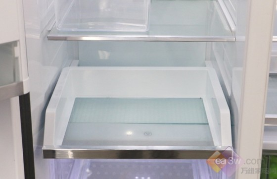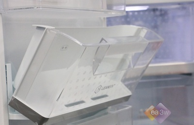 在冰箱冷冻室内,还可以看到这种“簸箕式”抽屉。它不同于玻璃搁架,可以进行前后推拉;又没有像储物盒那样需要反复推拉,直接可以拿取所需的食物。